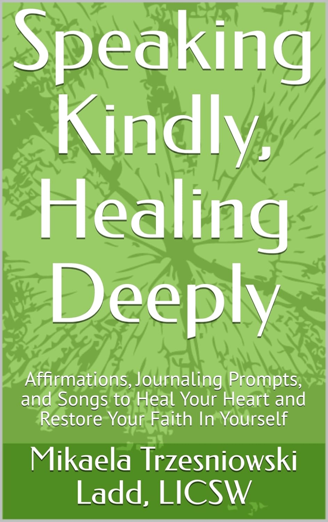 In “Speaking Kindly, Healing Deeply”, I explore some of my favorite positive affirmations. At the end of each short chapter is a journaling prompt to help you explore your own beliefs around speaking positively to yourself, as well as a song to guide your journey though this book.